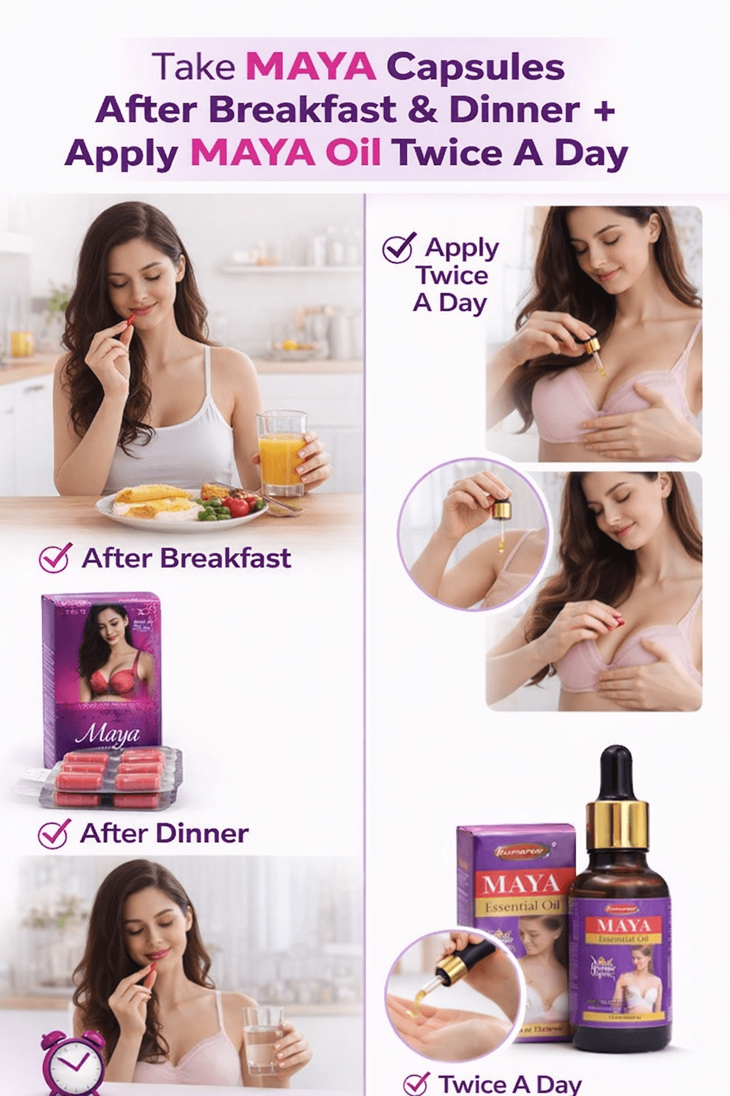 With consistent use alongside proper care and lifestyle habits, MAYA Beauty Boost Combo can support skin firmness, smoothness, and overall beauty care as part of your daily routine.