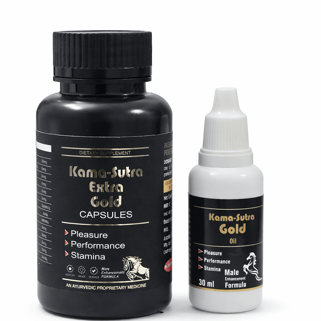 Kama Sutra Gold Herbal Wellness Kit for Men is a dual-action Ayurvedic wellness combination designed to support stamina, energy, and overall vitality. This herbal wellness kit includes capsules for internal support and massage oil for external application, making it a convenient addition to a daily routine.