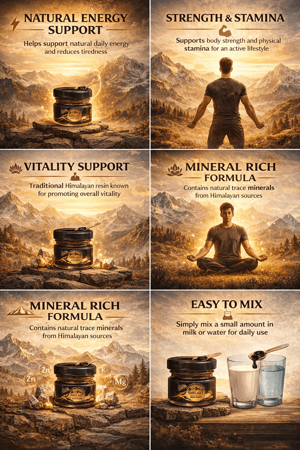 Traditionally, shilajit has been used in wellness practices to support overall vitality and daily energy. When used regularly alongside a balanced diet, proper hydration, and a healthy lifestyle, it may help support general wellness and active routine.