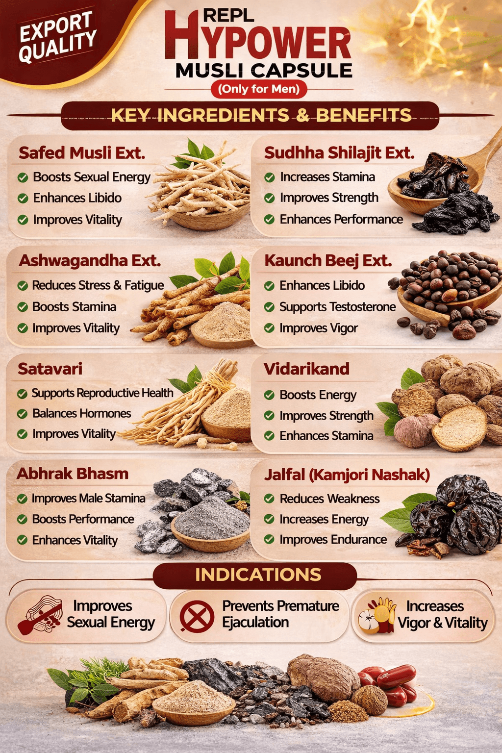 Ayurvedic Hypower Musli Capsules are specially formulated to support men’s overall wellness, energy, and daily vitality using a traditional herbal approach. Inspired by Ayurveda, these capsules help support strength, stamina, and an active lifestyle in a natural way.