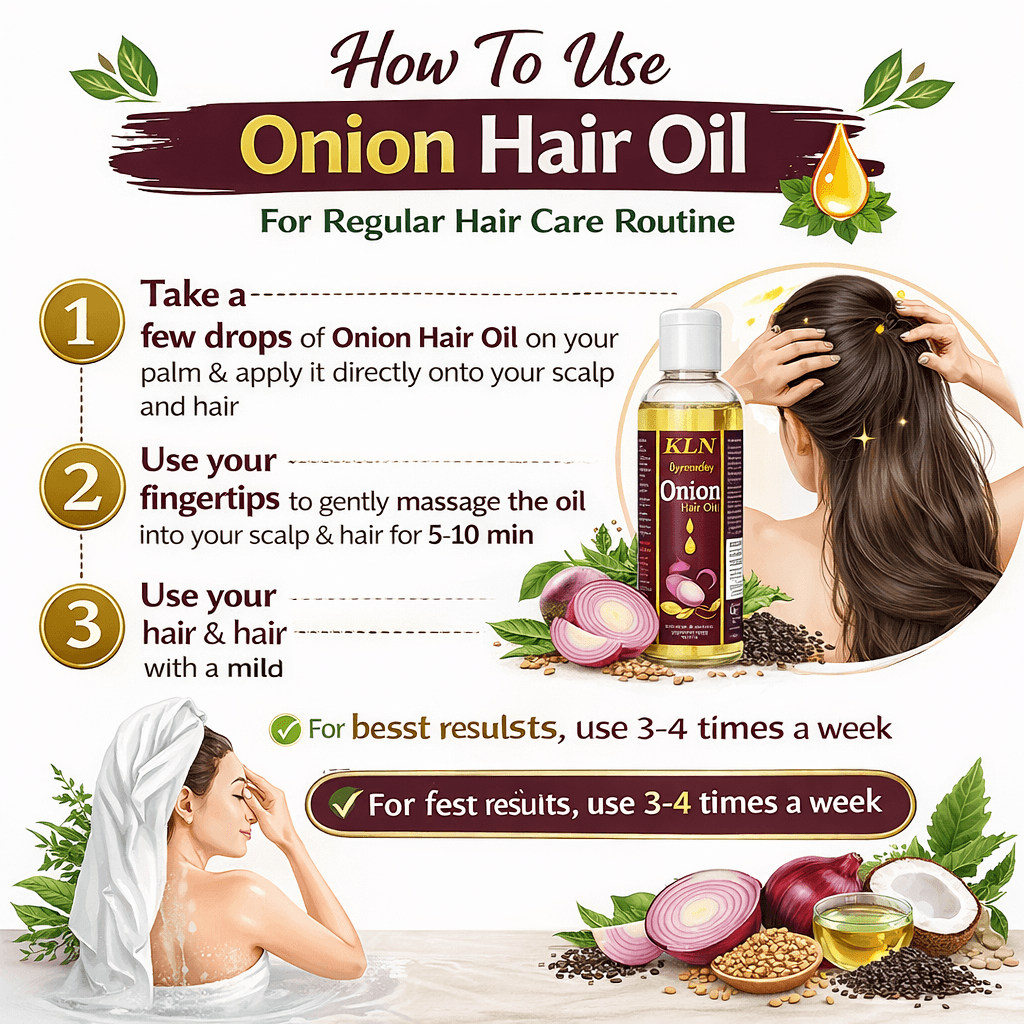This oil can be used before bedtime or prior to hair wash. Simply apply a small amount to the scalp and gently massage using fingertips. With consistent use alongside proper hair care and nutrition, herbal onion hair oil can help maintain scalp health and overall hair wellness.